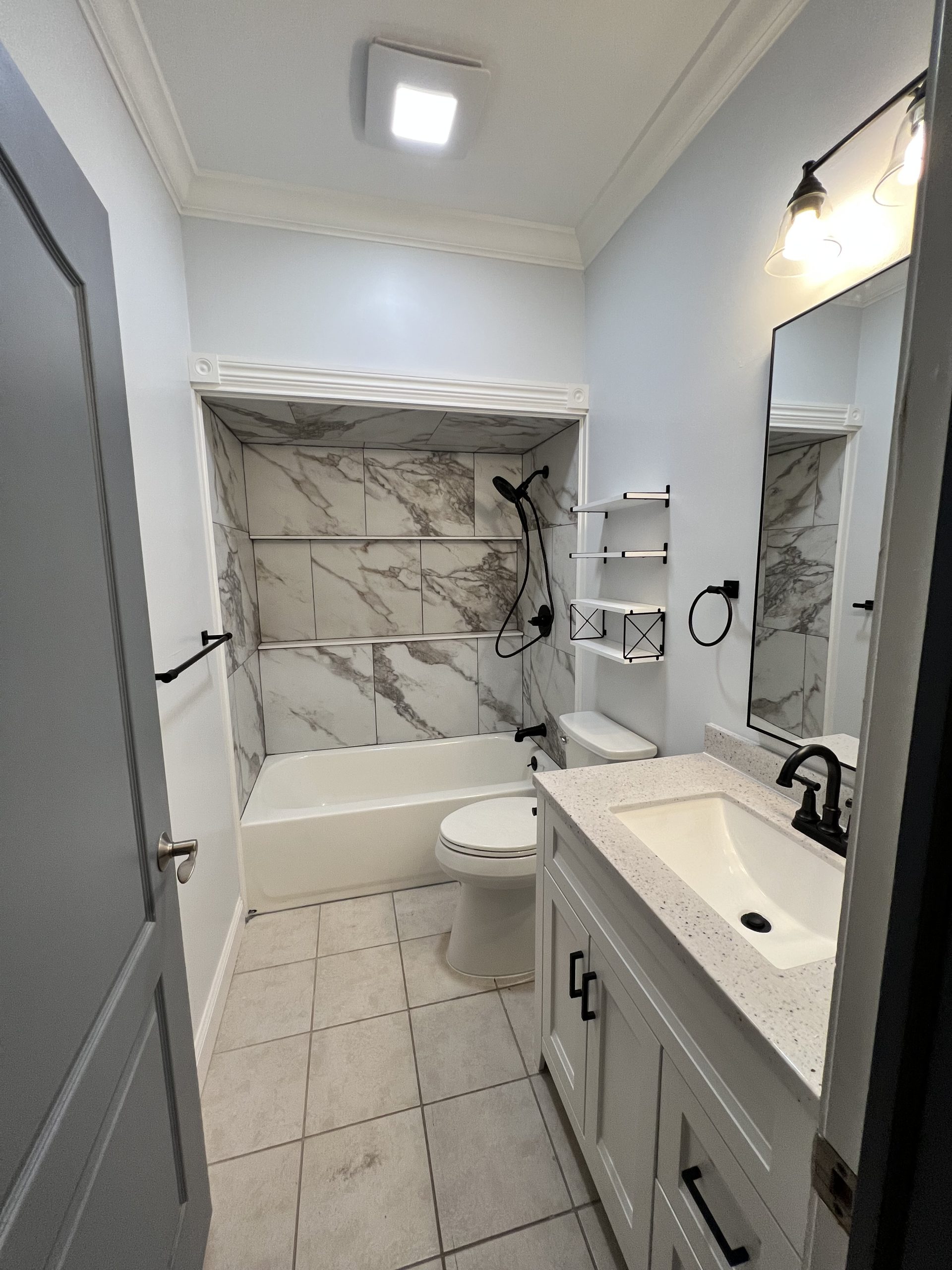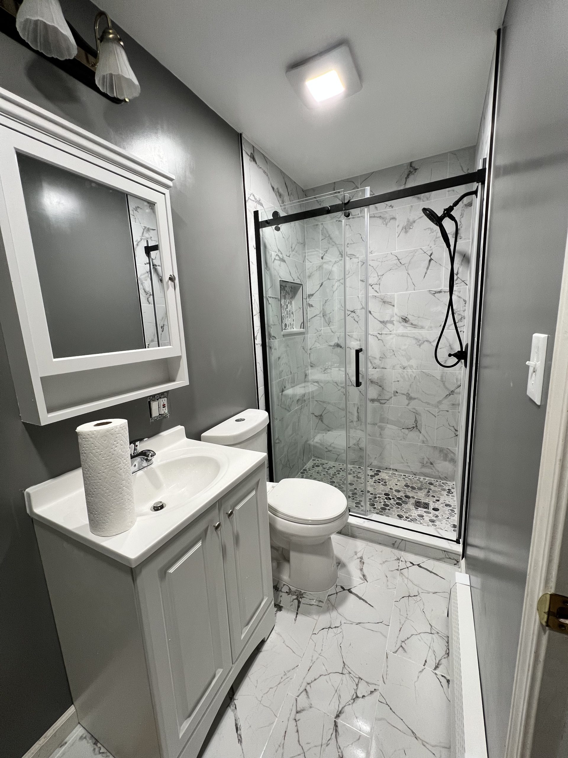 From compact powder rooms to full primary suites, we handle every element with precision — layout, waterproofing, tilework, lighting, ventilation, and fixtures — all executed with structure, care, and attention to detail.